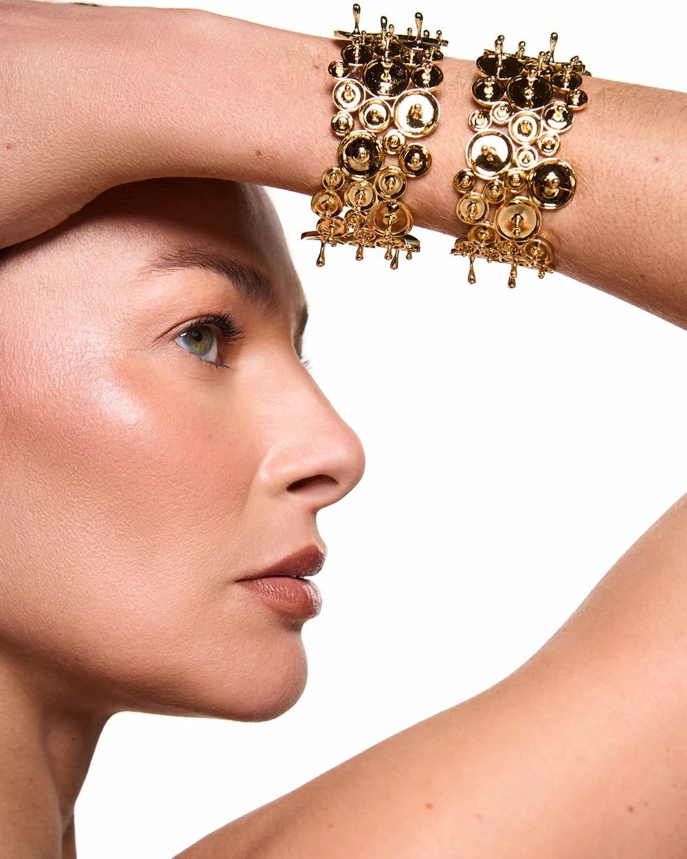Il braccialetto Chuvisco è una vera opera d'arte sotto forma di un gioiello leggero e versatile. Il suo design organico intreccia i cerchi in un delicato movimento architettonico. Minimalista ma sorprendente, trasmette potenza attraverso la semplicità e l'eleganza attraverso la sottigliezza.