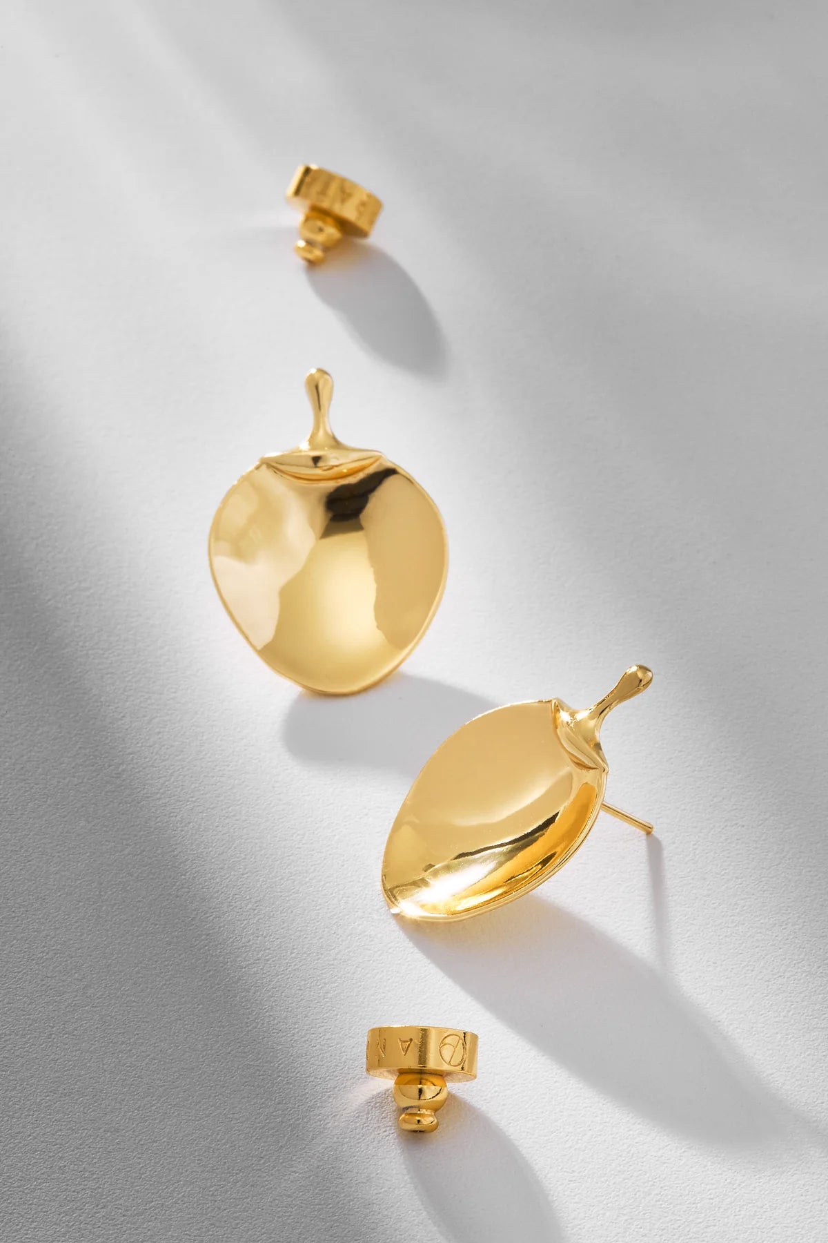 L'orecchino Chuva è una piccola scultura di lucentezza e fluidità in taglia P. Con un design organico e una finitura oro o argento, la sua forma arrotondata si apre in uno stelo delicato. Leggero e versatile, aggiunge un sottile tocco di raffinatezza, perfetto da abbinare sia a look quotidiani che a completi più eleganti.